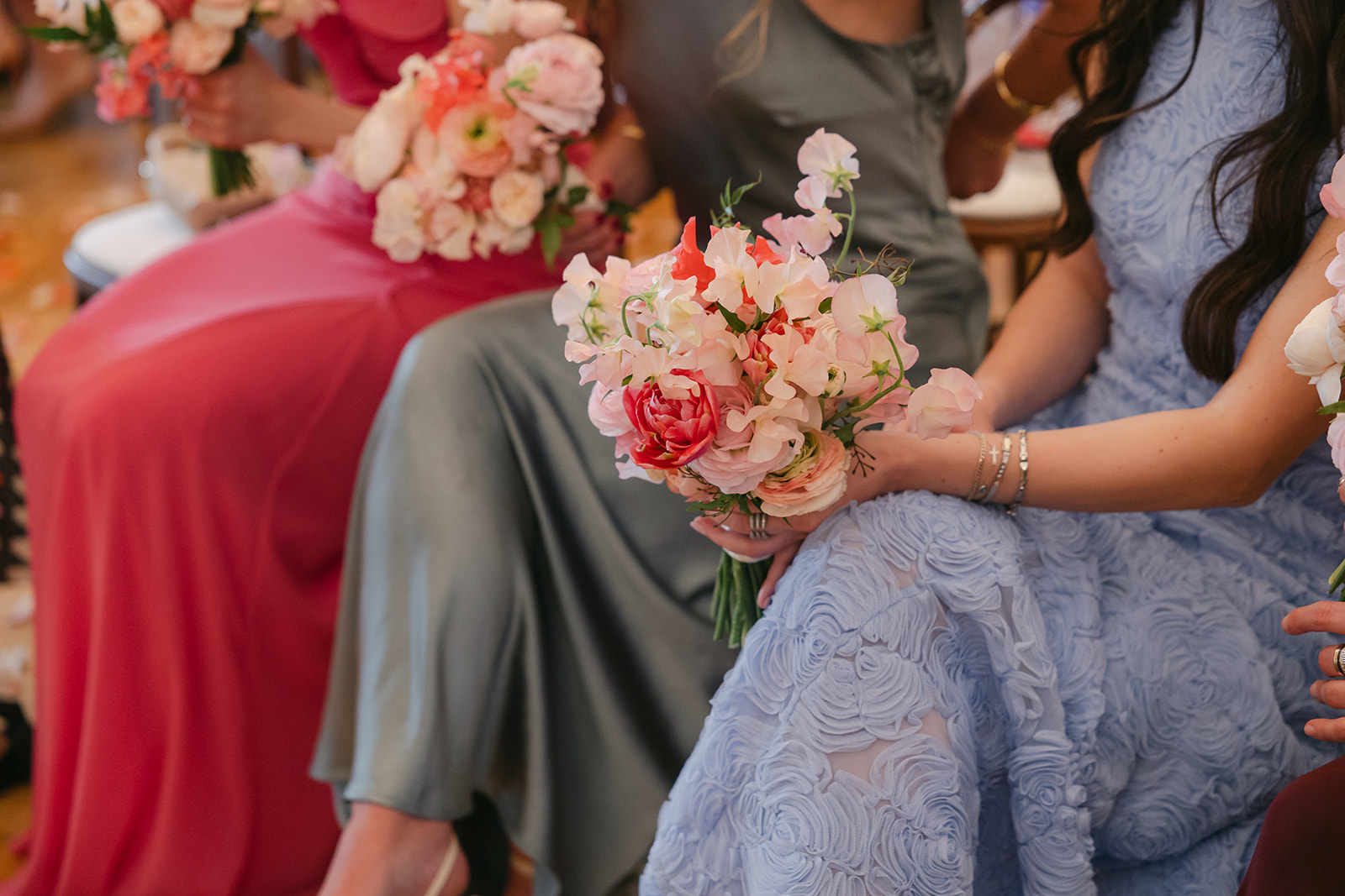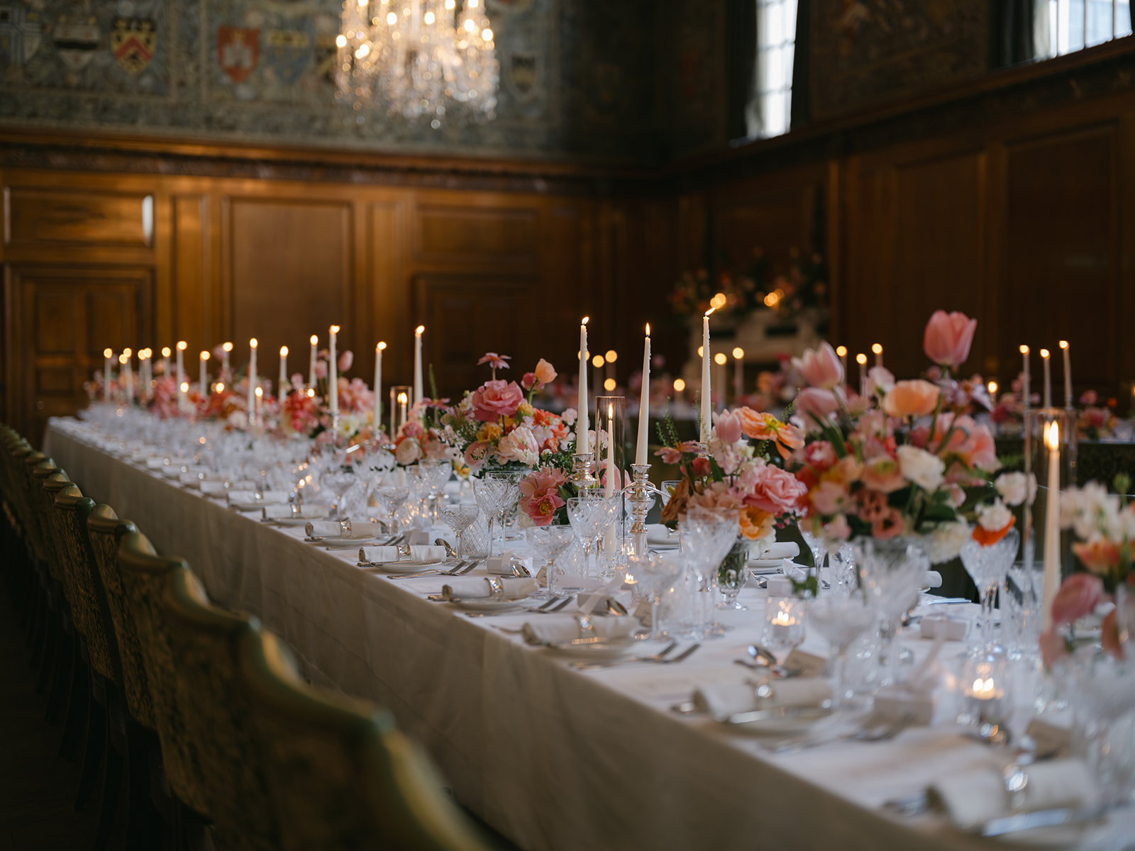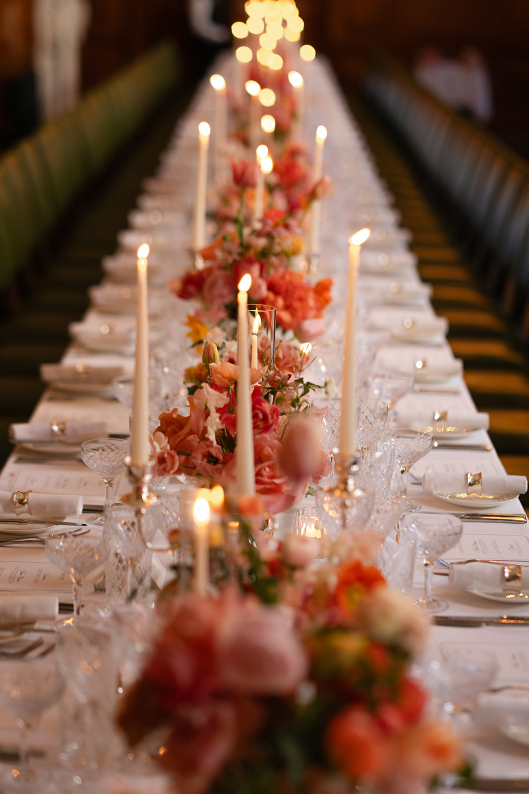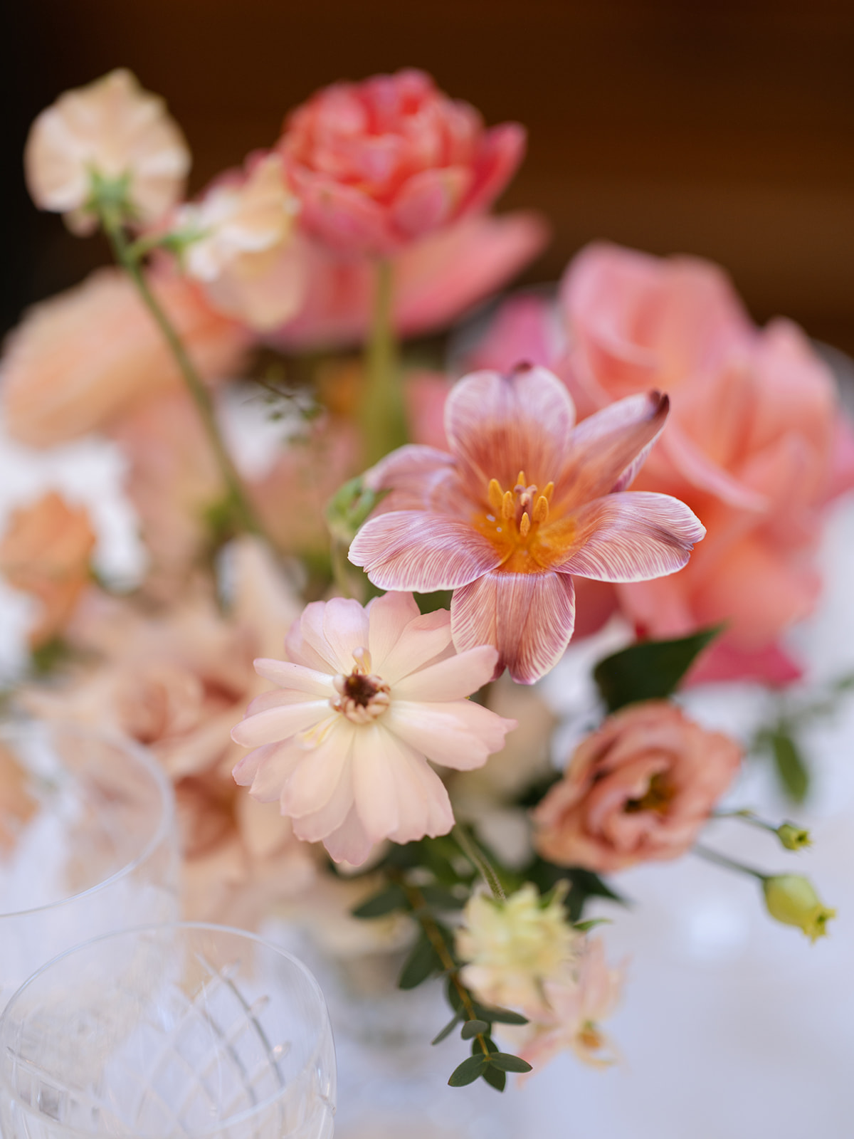The brief was to use bright and deep spring shades for a joyful and elegant celebration. Spring is a beautiful time for flowers. We used Icelandic poppies in all of their colours, tulips in sepia, bright salmon pink and coral, ranunculus, roses in watermelon and mustard, sweet peas in champagne and pink edged, with touches of spring green foliages. A riot of colour, perfect for the setting of The Ned.