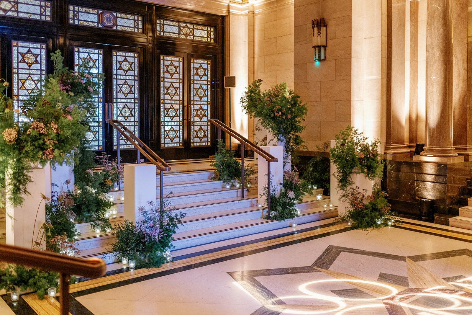 Quietly luxurious without being showy, and entirely floral foam free. A night to remember!